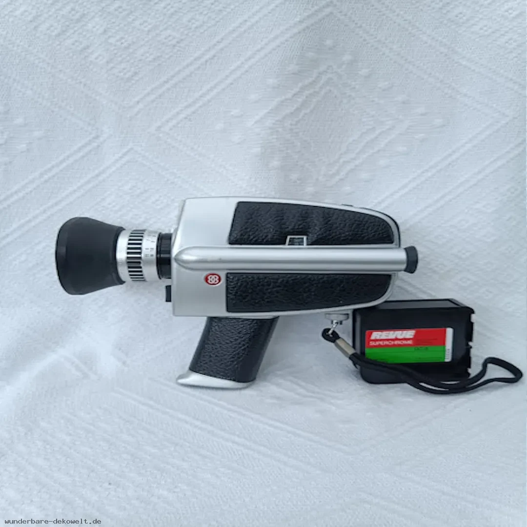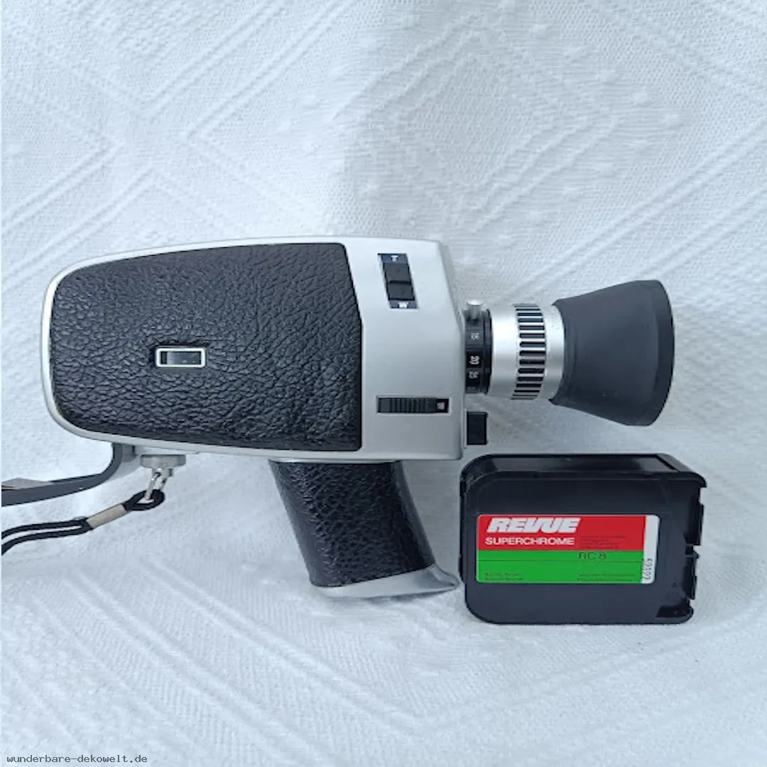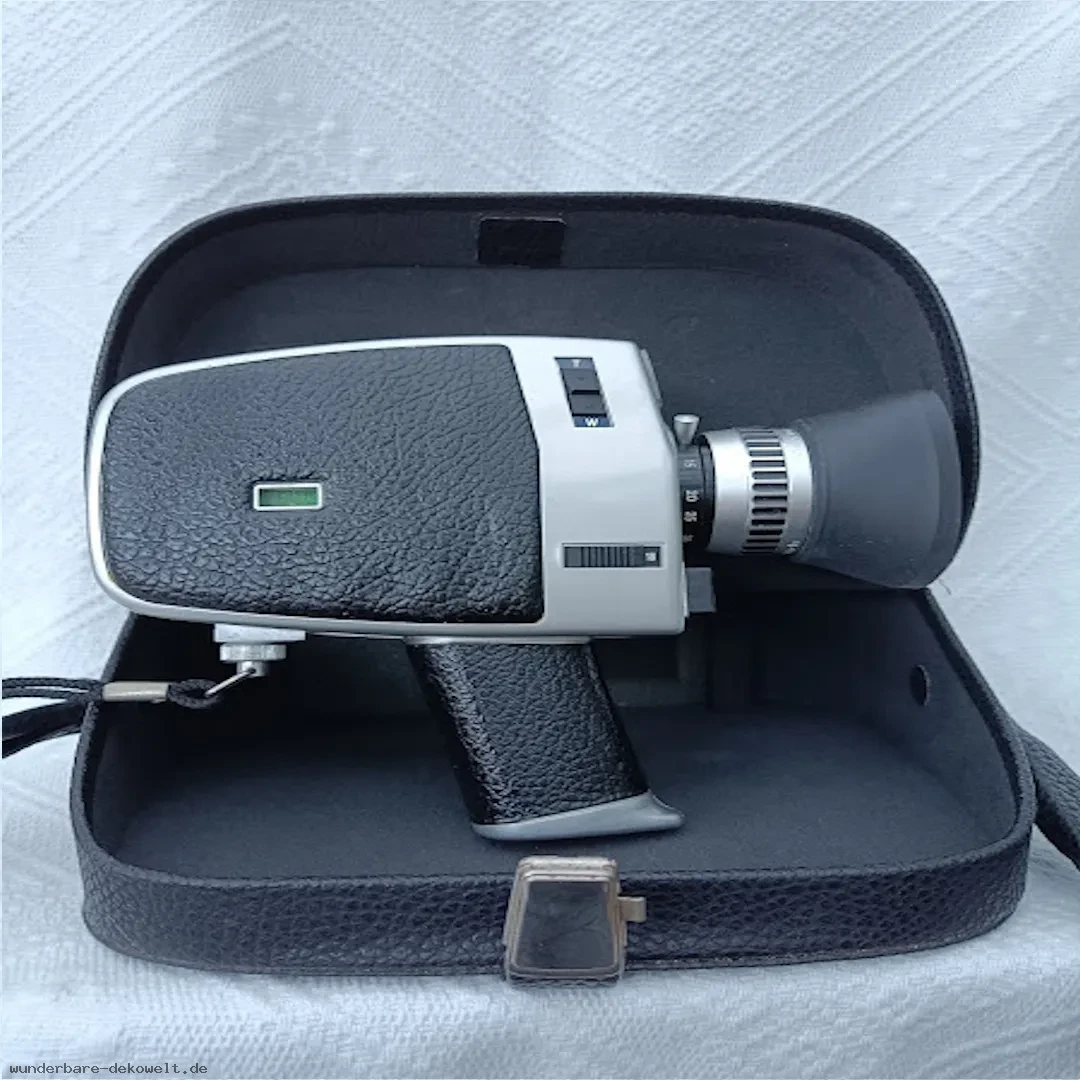 Kompakte Super-8-Filmkamera aus der klassischen Schmalfilm-Ära. Die Kamera überzeugt durch ihre solide Bauweise und eine klare, funktionale Gestaltung, wie sie für Geräte dieser Zeit typisch ist.