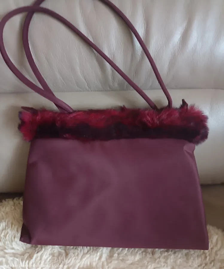 Sehr schöne, zeitlose und stilvolle neue Handtasche mit Webpelz. Die Taschen sind in handlicher Größe, außen aus feiner aber robuster Mikrofaser mit Webpelzbesatz, innen Stoffeinsatz und separates Fach mit Reißverschluss, Taschenverschluss ebenfalls durch Reißverschluss. Farben: Schwarz, Lila oder Bordeaux.