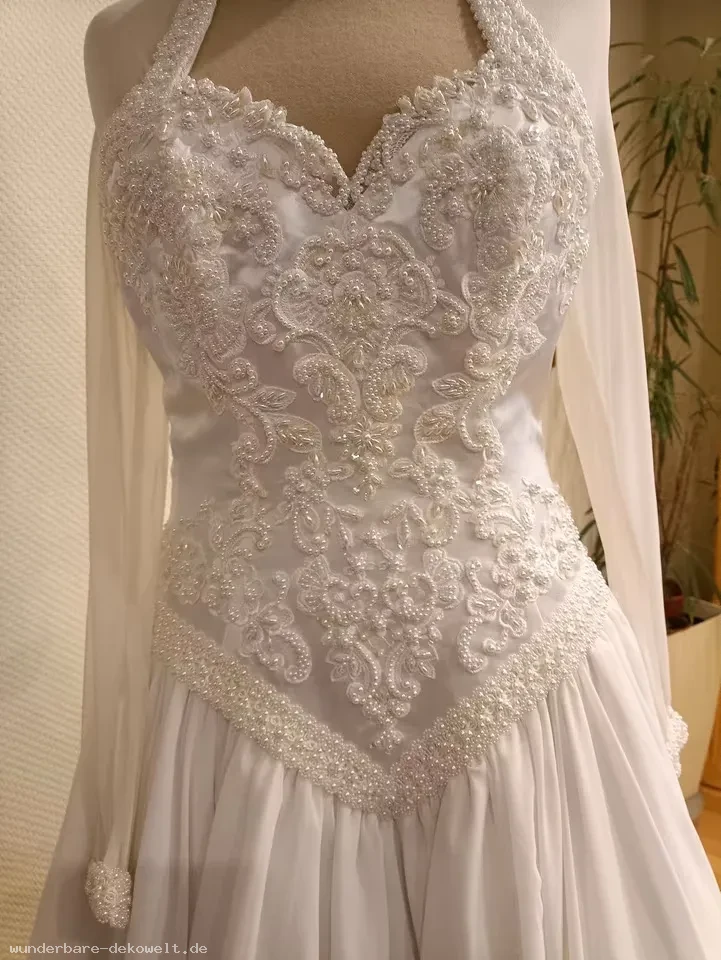 Ein märchenhaftes Hochzeitskleid für den ganz besonderen Tag können Sie hier erwerben. Es ist sehr aufwendig und hochwertig verarbeitet.