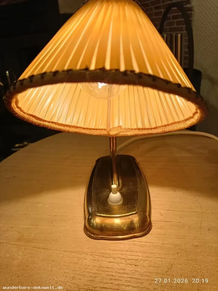 Nachttischlämpchen aus den 50.ern mit typisches Plisseesschirmchen und Messingfuß – Fassung.