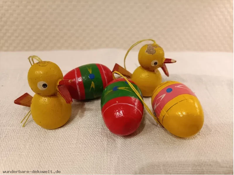 | Gesteck | Motiv | Ente und Eier aus Holz, Hase mit Möhre, Holznest, Körbchen, Ostereier, Strohnest |
